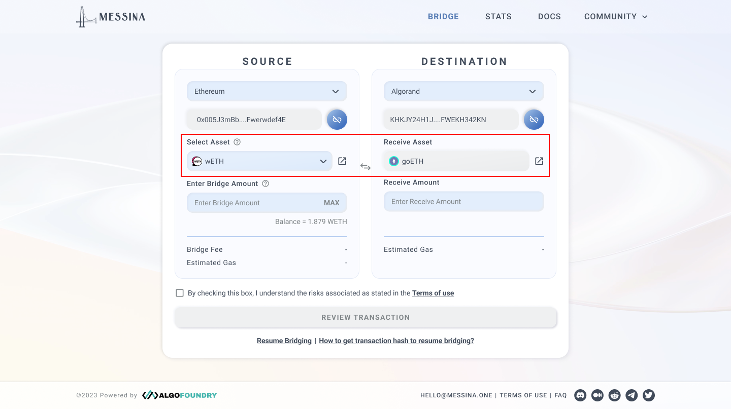 Enter a valid bridging amount in the "Input Bridge Amount" or the "Received Amount" field. You will see the Bridge Fee and Estimated Gas fees automatically populated.