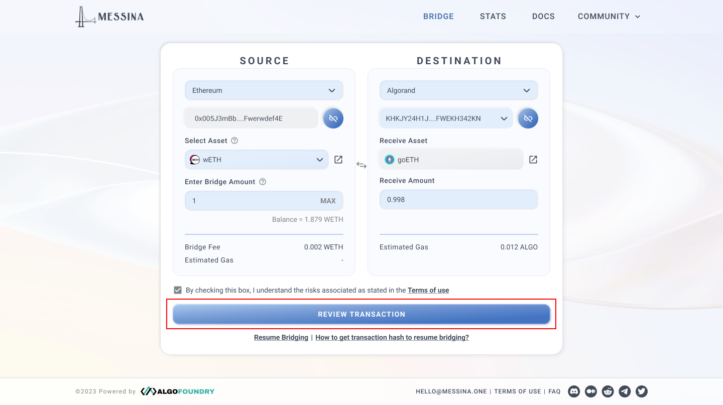 Once that is done, tick the checkbox and click on "Review Transaction".
